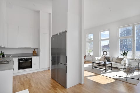 Välkommen till denna ljusa och luftiga trerummare med en takhöjd om 3,5 m, extra höga fönster i två väderstreck samt en totalyta om 90 kvm. Det generösa vardagsrummet erbjuder gott om plats för umgänge i både soffgrupp och matgrupp. Köket är praktiskt L-format och klassiskt inrett med vita luckor och grå bänkskiva, här finns också plats för matbord. Bostaden erbjuder en hall med mycket förvaringsmöjligheter och två sovrum varav det ena har ett intilliggande klädkammare/förråd. Möjlighet finns att skapa sig ytterligare ett sovrum. Här bor du ett stenkast från shopping, service och kommunikationer samt härliga grönområden i Tyresö naturreservat. Varmt välkommen på visning!