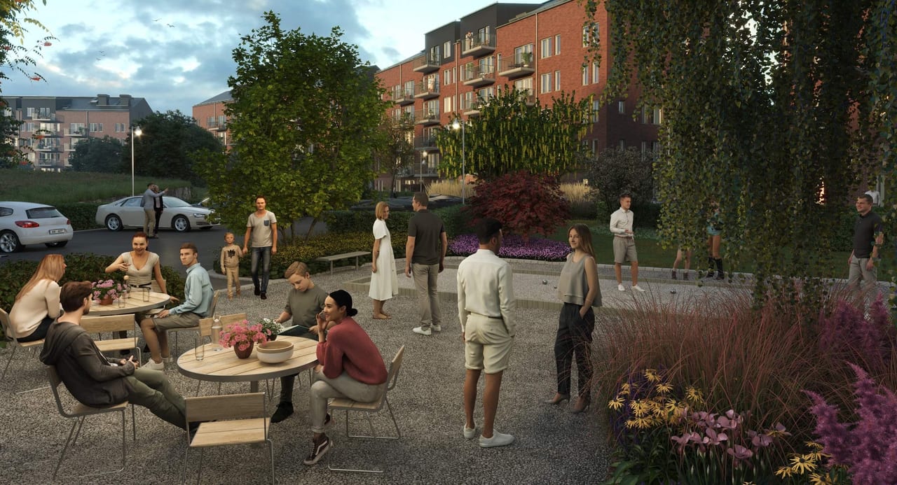 I grannskapet finns mycket att ta del av för en bekväm och aktiv vardag. Du kan ge dig ut på utflykter med en cykel från cykelpoolen, koppla av i pergolan och spela boule med grannarna på boulebanan.